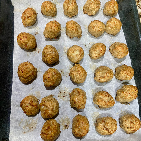 2. Combine all the ingredients in a mixing bowl. Shape the mixture into 25-30 small balls and arrange them on the prepared baking sheet (I used a small scoop of 1½ tablespoons and didn't need to roll them).